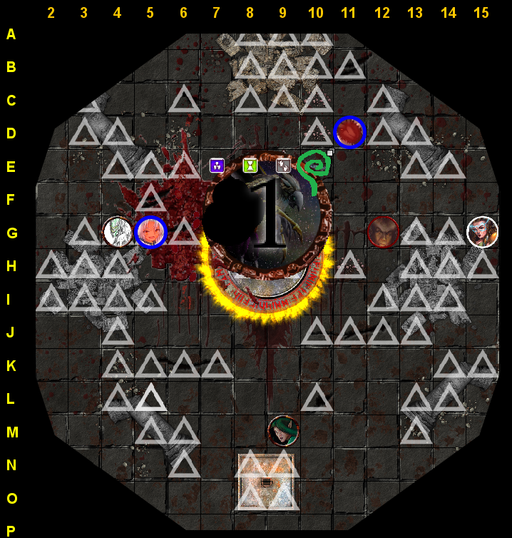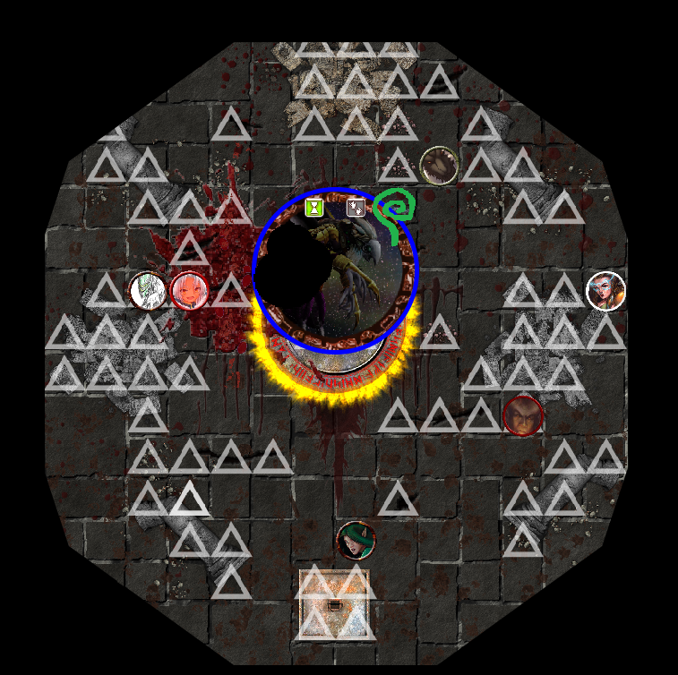 -Blue shaded squares are frozen spikes. They are considered difficult terrain, and you take 5 cold damage for falling prone on them.