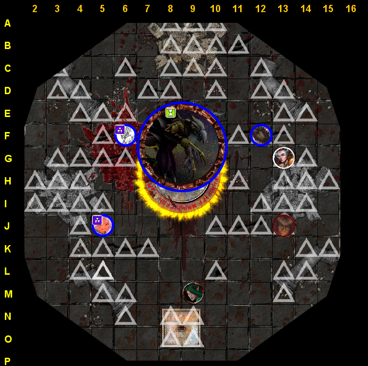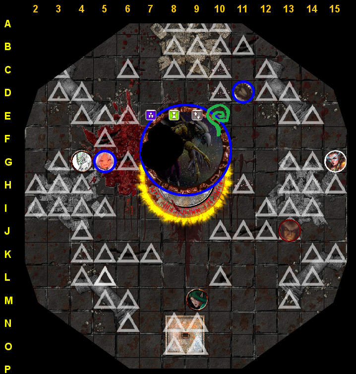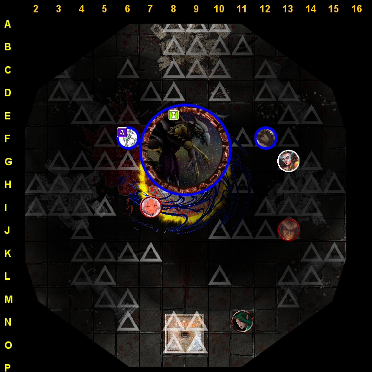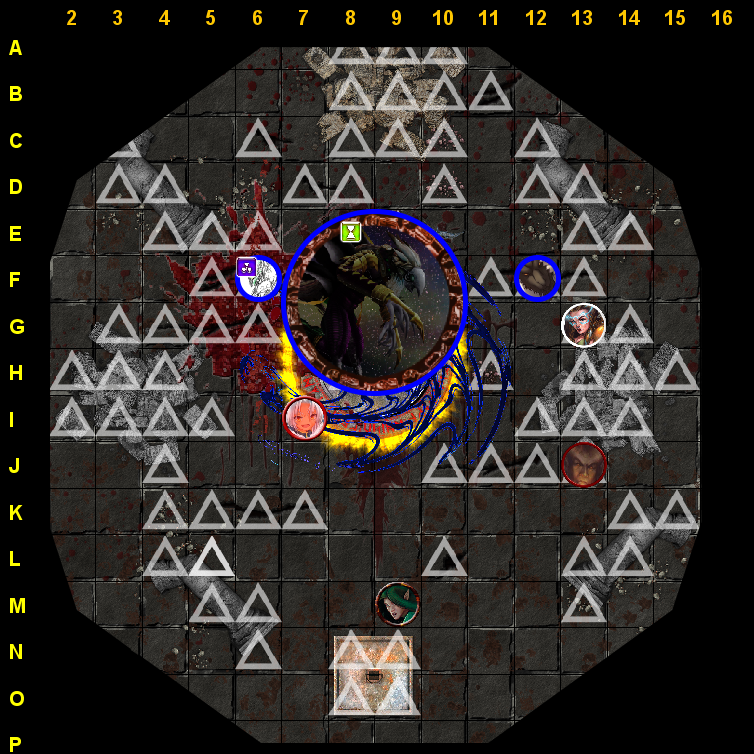Aberrant Wiseman (E/F/G/H, 7/8/9/10) -204 HP (bloodied) slowed, Stirring Shout (regain 6 HP when hit), prone, marked, vulnerable 5 all, dazed