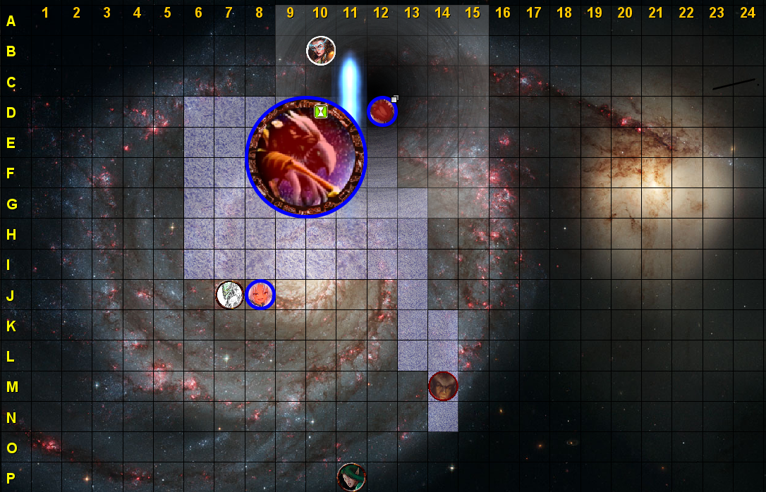 Baleful Comet moves from C,12 to N,14 and hits Yagi, Kadol, and Fays