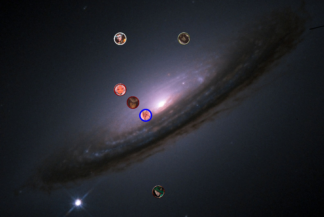 Slowly the backdrop settles in, as the lights of thousands of stars twinkle around you; the party is in the dark reaches of space, far, far from home. A swirling vortex in the far off distance moves at surprising speed, as though years were passing like seconds, the two galaxies merging together as planets colide and suns die out. Of more pressing importance is the void that opens near Lia, who feels a strong tug from it. A nearby entity that looks like a dying star threatens to do the same to Kadol and Yagi.