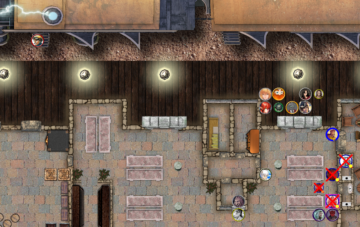 Sora stops short of entering and focuses a mental attack against the meazel currently in her line of sight. The creature resists, but it comes out of the encounter worse for wear, left vulnerable after the assault on its mind. Sora uses her psionic power and can briefly see things inside the room as though she were standing inside.