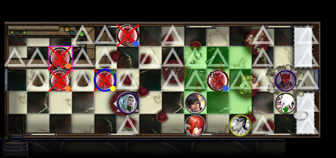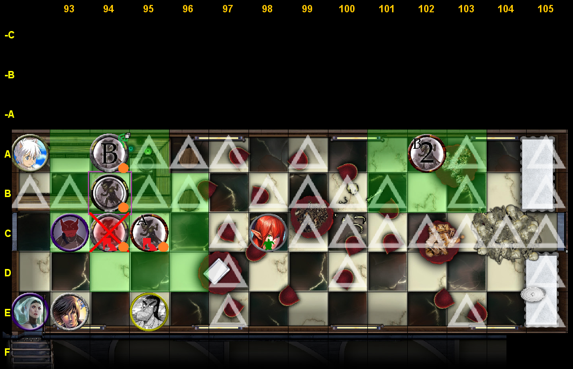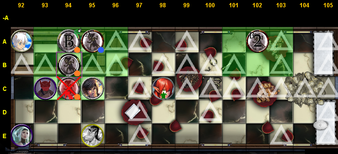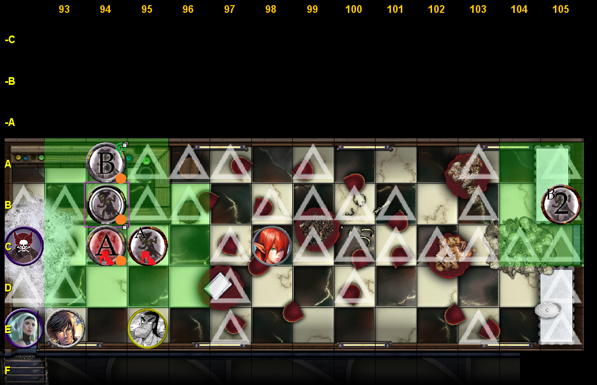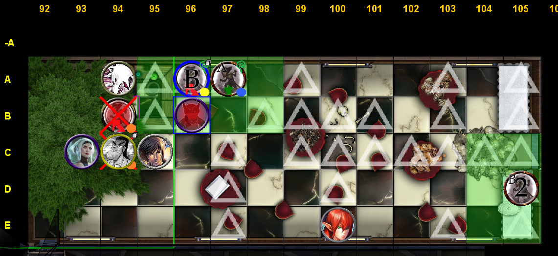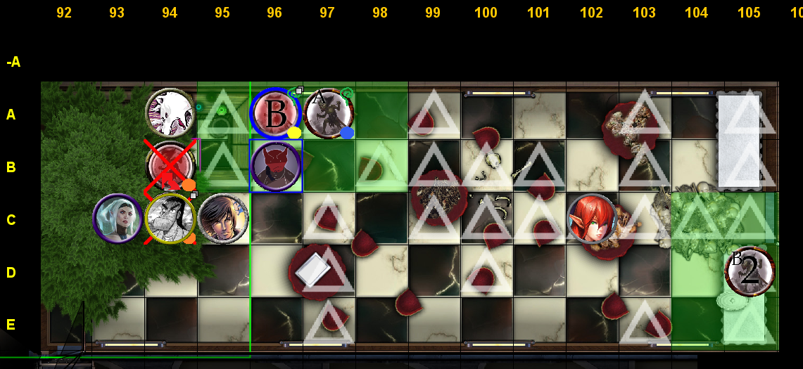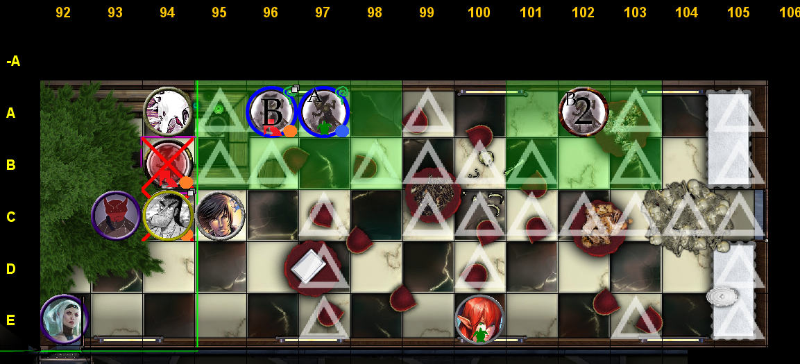 -Squares marked by triangles are difficult terrain and require an extra square of movement to enter
