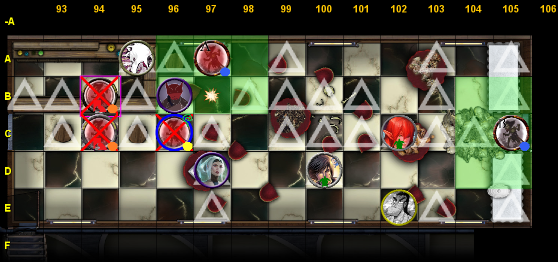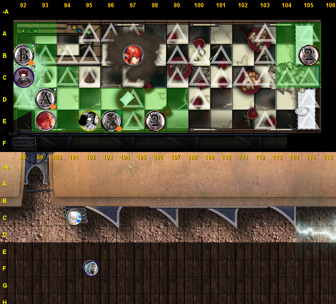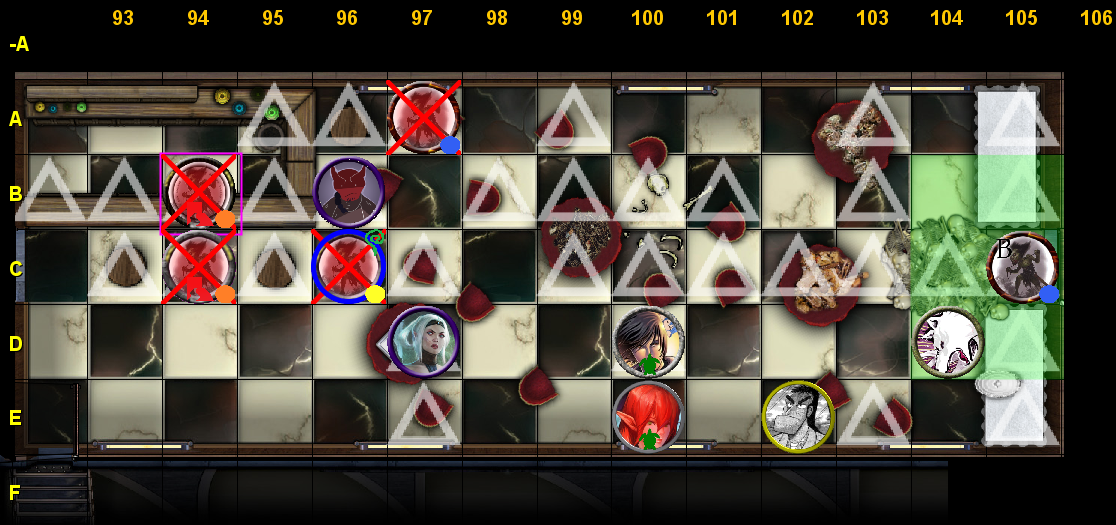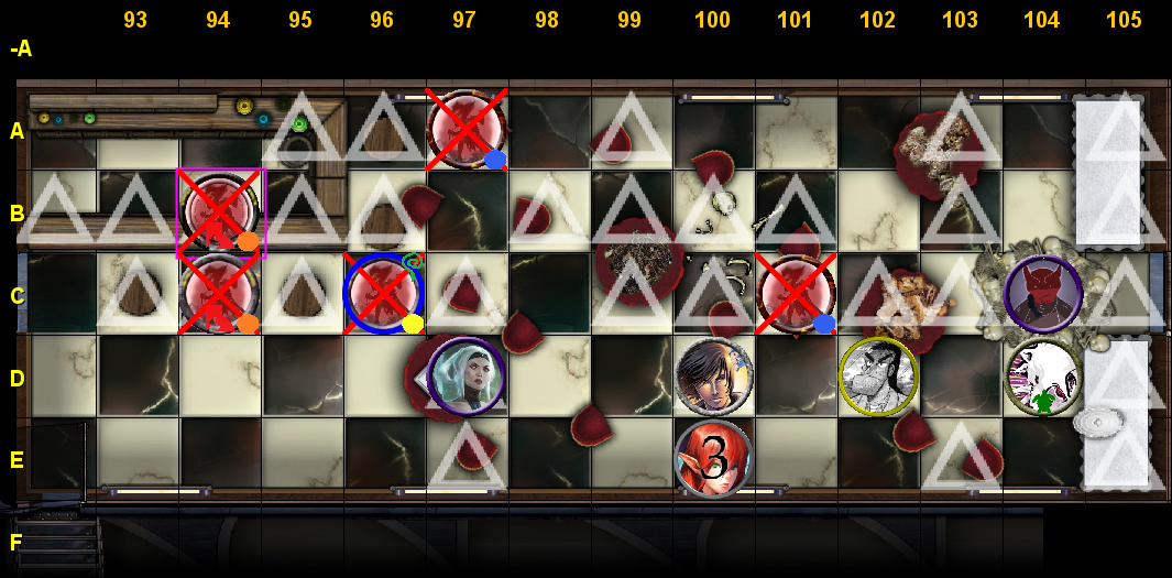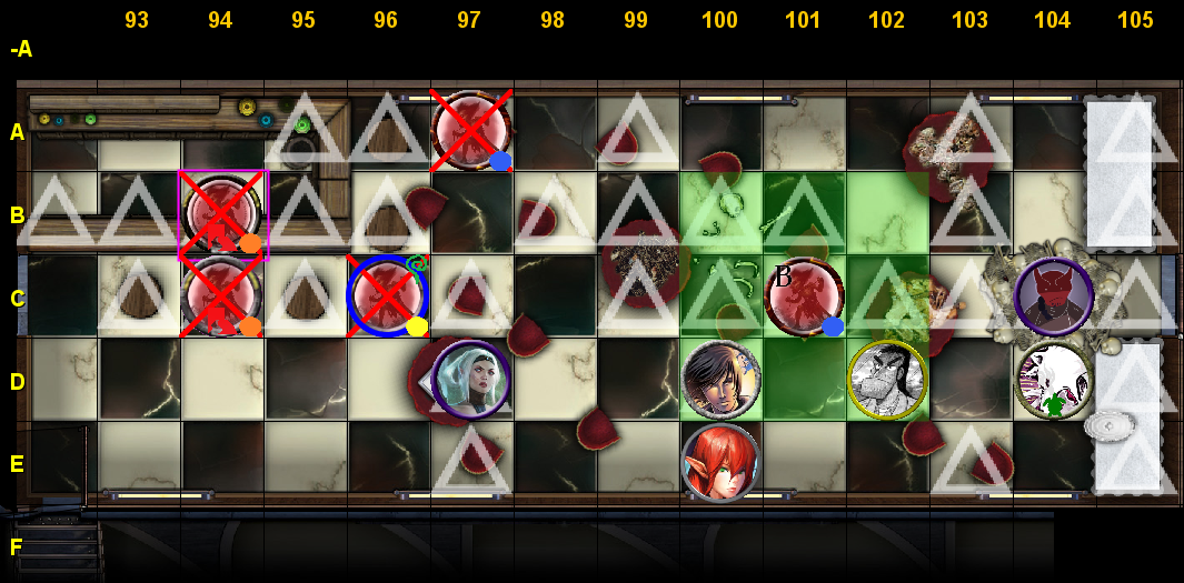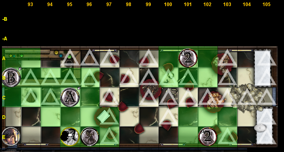 -Squares marked by triangles are difficult terrain and require an extra square of movement to enter