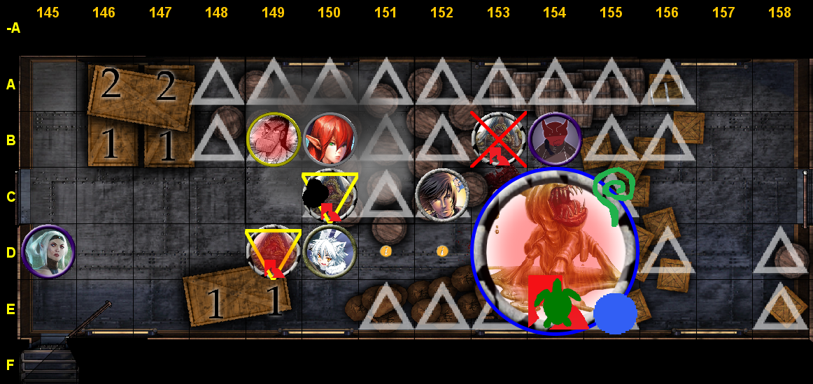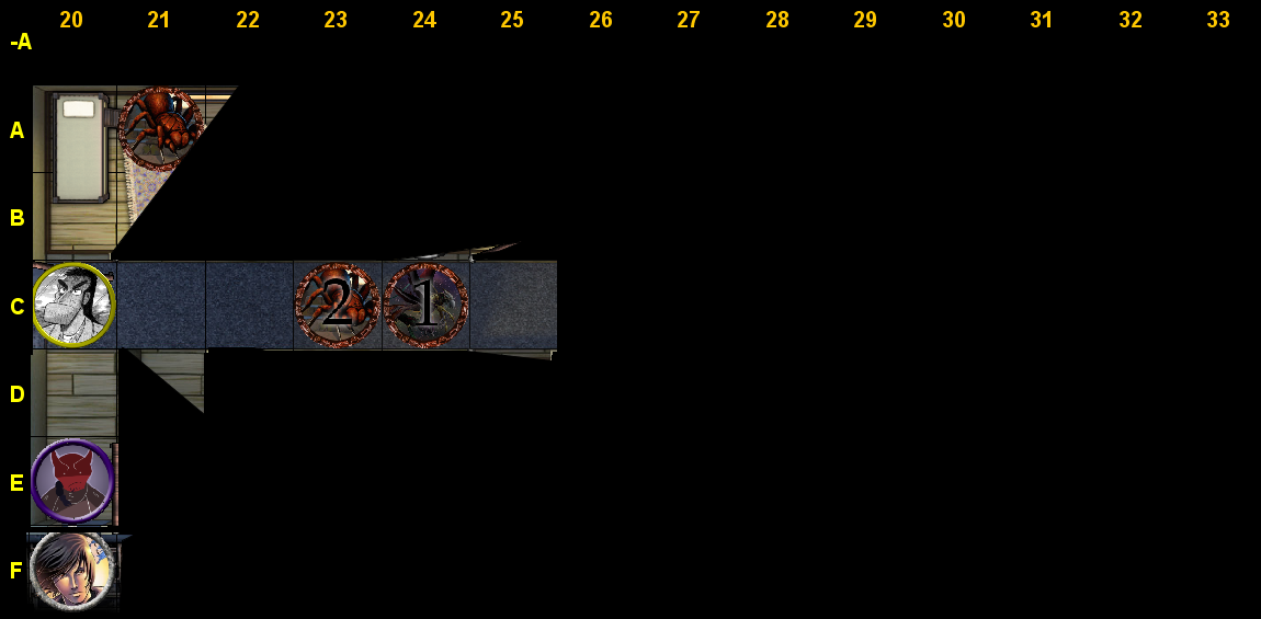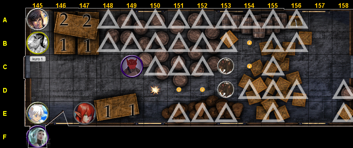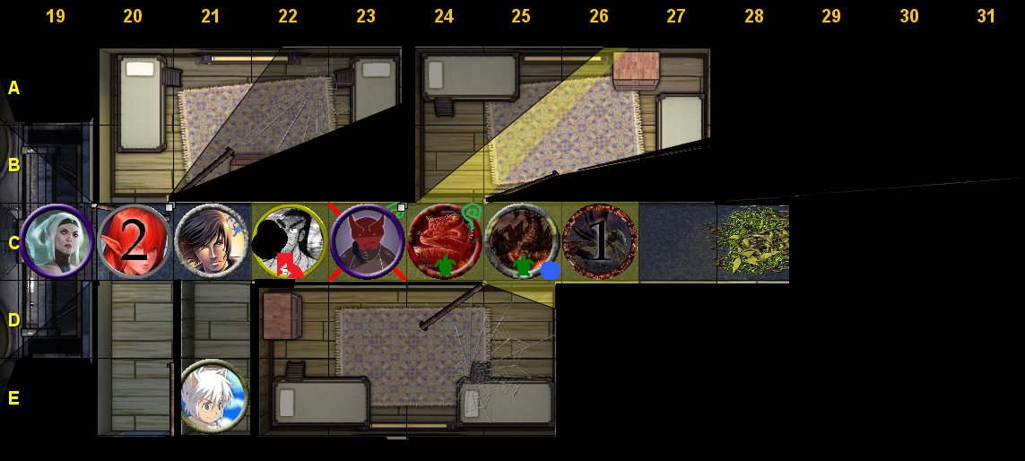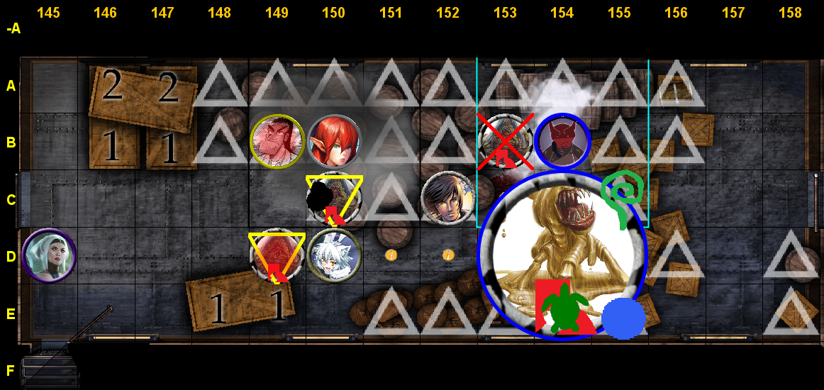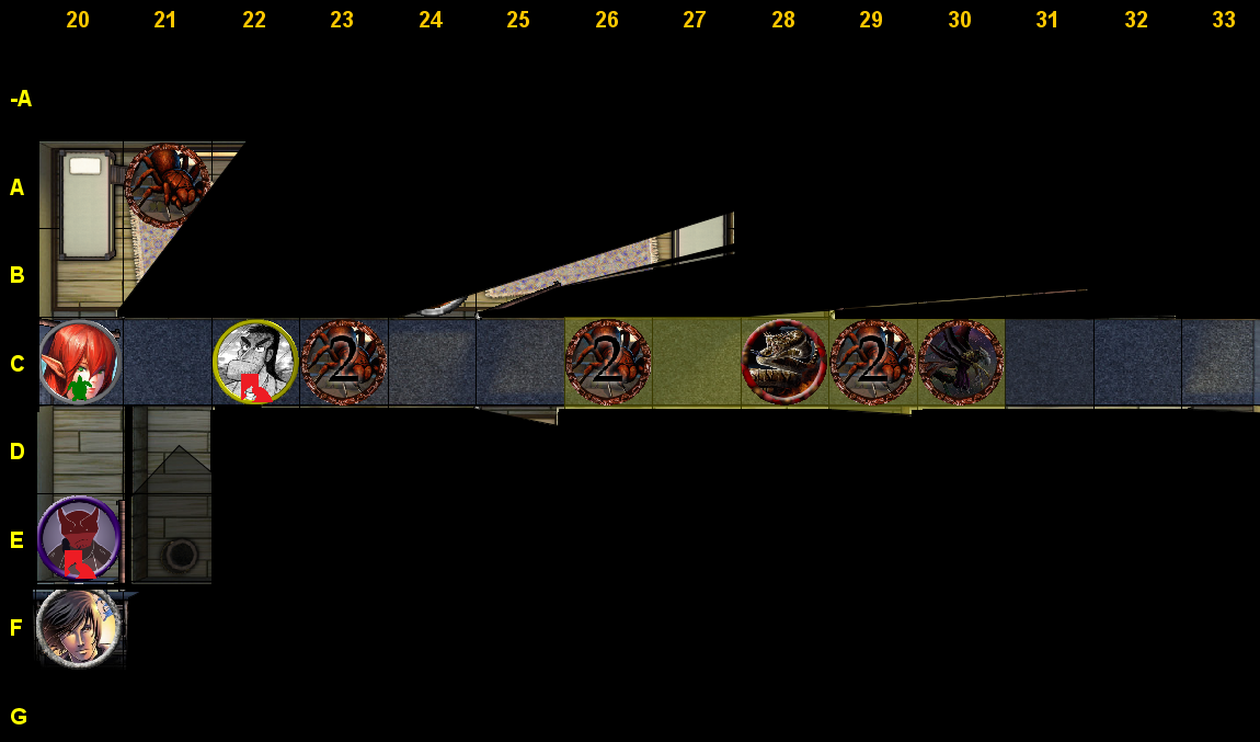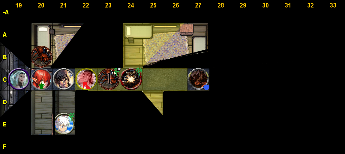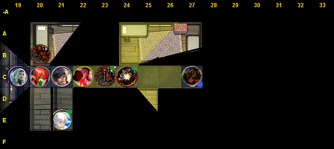 -Squares marked with i's inside yellow circles require creatures of medium size or larger to squeeze to enter them.