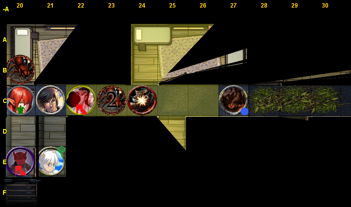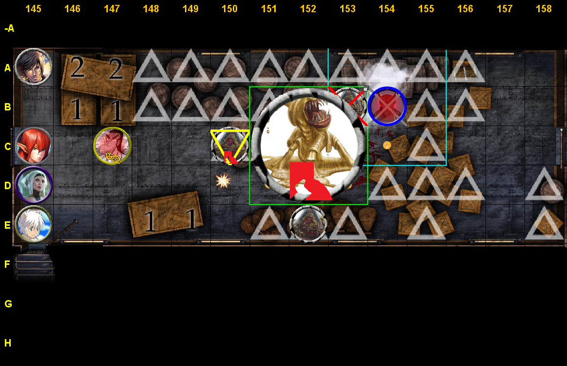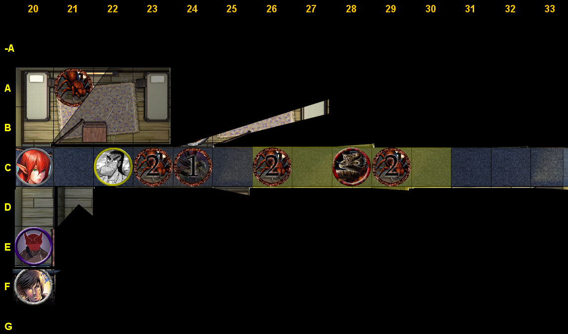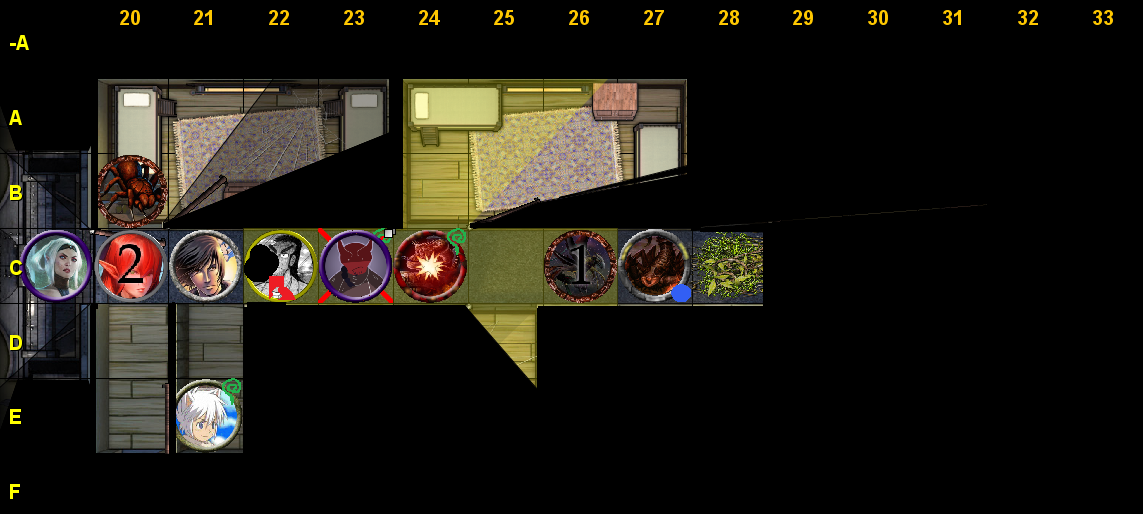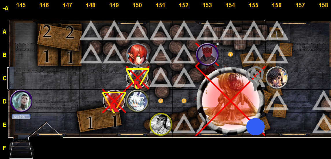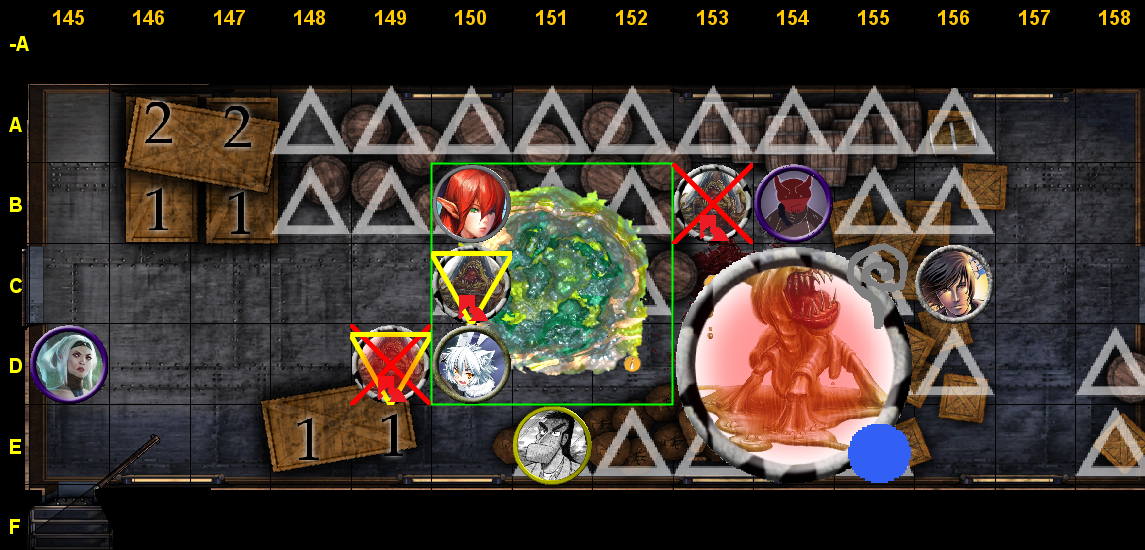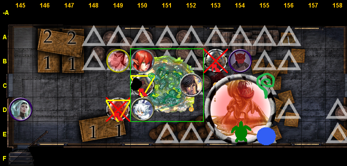 -Squares marked with i's inside yellow circles require creatures of medium size or larger to squeeze to enter them.