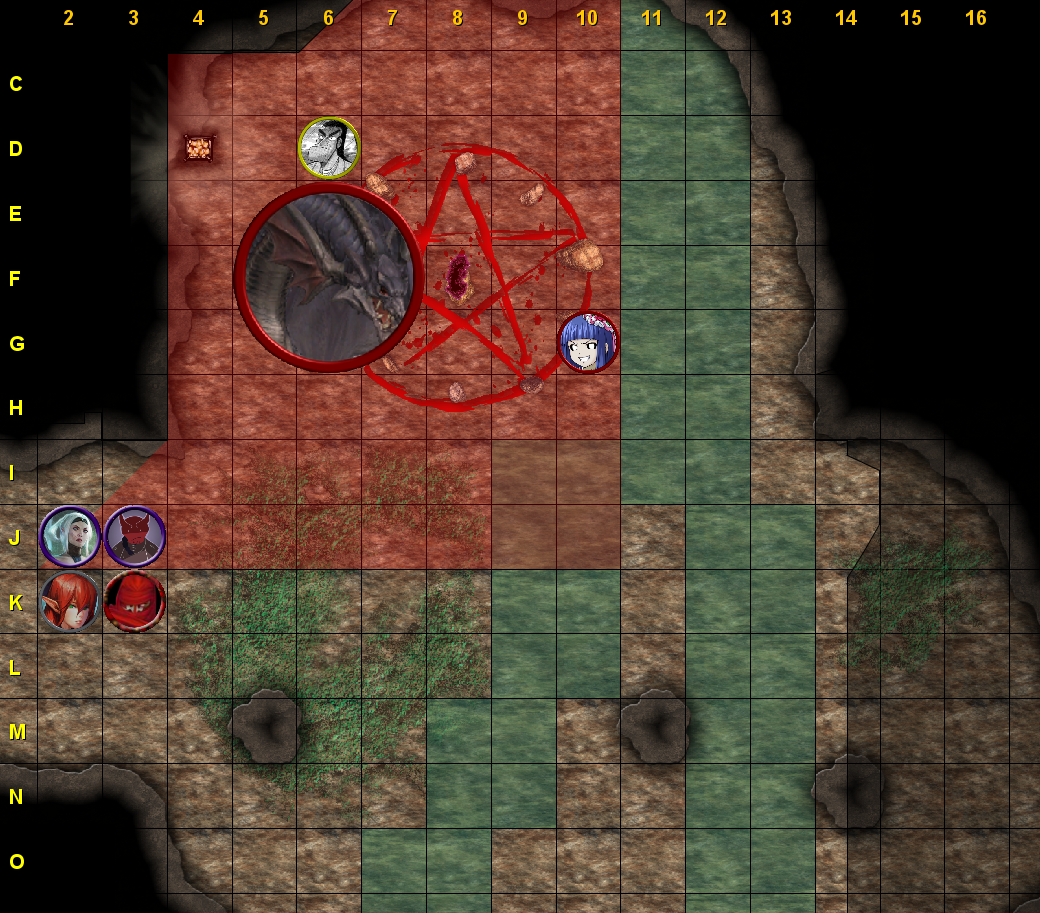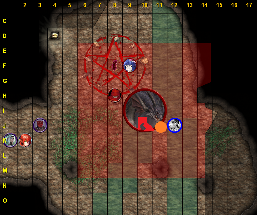 Kuro (F-8) 69/69 HP prone, grabbed (DC 20)