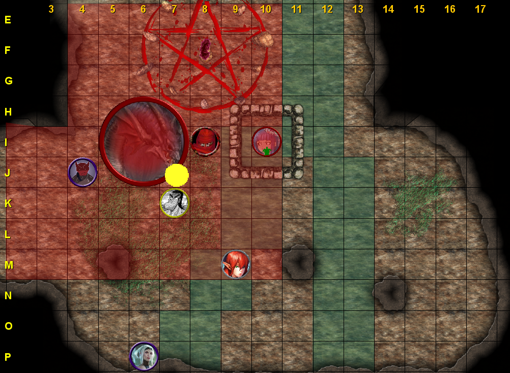 Sophie (Arcana) : This tiny rift to the deepest depths of The Dragon Below, where tunnels open into the Elemental Chaos, and the laws of nature are meaningless, is a hazard and a level 11 blaster. It's but a tiny fracture in the fabric of reality, and that's more than enough for the aspect to slip through. For those not twisted by insanity, however, being in proximity to it is detrimental to physical and mental well-being (ending your turn in or adjacent to the rift causes you to take psychic damage, and may result in taking ongoing 5 psychic damage and being dazed until you save; Ruuz and Khyber are, unfortunately, immune to its effects)